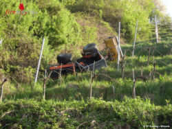 FRESING-KITZECK (STMK): Am 15. April 2016 gegen 07:45 Uhr kam beim Mähen eines Terrassenweingartens im Ortsteil Brudersegg ein Arbeiter beim Reversieren zu weit mit seinem Traktor an eine Geländekante und stürzte damit um.
