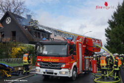 Gegen 08.30 Uhr hörten Anwohner ein explosionsartiges Geräusch. Als sie der Ursache auf den Grund gingen, entdeckten sie eine schwerverletzte Person auf dem Grundstück eines Einfamilienhauses. In dem Haus breitete sich ein Feuer aus, das sich bei Eintreffen der Feuerwehr bereits stark ausgedehnt hatte.