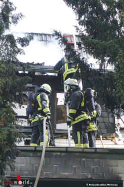 Eine komplette Absuche des Hauses ist auch nach Abschluss der Löscharbeiten noch nicht möglich. Teile des Hausdaches sind eingestürzt, im Keller behindern Löschschaum und Wasser die Suchmaßnahmen. In den nächsten Stunden ist mit keinem weiteren Ergebnis dahingehend zu rechnen. Das Wohnhaus wurde durch den Brand vollständig zerstört. Der Sachschaden dürfte sich auf mindestens 300.000 Euro belaufen.