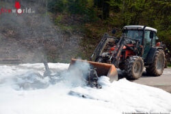 Nachdem das Fahrzeug gelöscht war mit Schaum und Wasser, wurde es vom angrenzenden Landwirt auf die Seite geschoben. Die Reste vom Fahrzeug wurden von der Feuerwehr weggekehrt und die Straßenmeisterei verständigt.