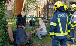 ATTNANG-PUCHHEIM (OÖ): Zu einem ganz besonderen Einsatz wurde die Feuerwehr Puchheim am 17. April 2016 in die Gmundner Straße in Attnang-Puchheim gerufen. Ein Hausbesitzer enddeckte dort ein Reh, das im Gitterzaun zwischen den Streben feststeckte und sich nicht mehr selbstständig aus dieser Zwangslage befreien konnte.