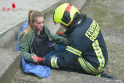 SCHWERTBERG (OÖ): Großalarm für Feuerwehr, Rettung, Rettungshundestaffel und Polizei nach einem simulierten Brandausbruch und folgender Massenpanik bei einer Veranstaltung auf der Aiserbühne Schwertberg. Rund 120 Einsatzkräfte der Blaulicht-Organisationen versorgten rund 60 verletzte Personen und löschten den Brand in einem schwer zugänglichen Turm.