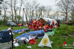 Vom ÖRK wurde das Patientenleitsystem angewendet, welches bei Einsätzen mit einer großen Menge an Verletzten zum Einsatz kommt. Hierzu wird jeder gefunden Person von einem Notarzt ein Kärtchen umgehängt, welches die Einsatzkräfte über Verletzungen und die Dringlichkeit des Abtransportes informiert. Somit konnte eine schnelle und richtige Versorgung garantiert werden. Am Sammelplatz wurden vom ÖRK die Behandlungsstationen, ein Zelt und mehrere Feldbetten aufgebaut.