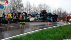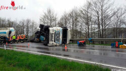 LAAKIRCHEN (OÖ): Am Montag den 18. April 2016, gegen 3.15 Uhr, stürzte ein Sattelschlepper auf der B 144 in einer Rechtskurve zwischen Oberweis und Laakirchen um.