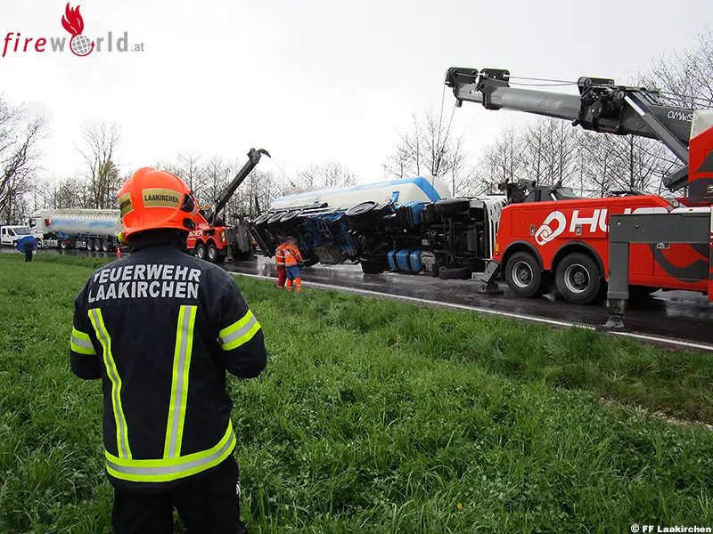 Das mit 25 Tonnen Talkum beladene Schwerfahrzeug durchstieß die Leitscheine und kam teils auf der Fahrbahn, teils am abschüssigen Gelände zu liegen. Der Fahrer wurdebei dem Unfall leicht verletzt, am Fahrzeug entstand beträchtlicher Schaden. Die alarmierten Feuerwehren Laakirchen und Oberweis sicherten die Unfallstelle großräumig ab.