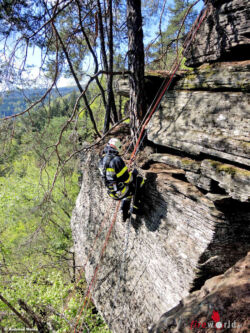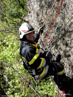 Dieses Szenario erforderte viel Vorarbeit und Sorgfalt, nur mehrere MR-AS Gruppen konnten die abgestürzten Personen im steilen felsigen Gelände retten. Die MR-AS Trupps begannen umgehend damit mehrere gesicherte Abstiege in die hohen und senkrecht abfallenden Felswände zu schaffen, um die Verletzten, die sich rund 40 Meter unter dem Wanderweg befanden, zu betreuen. Neben den Kameraden der Feuerwehren, nahmen auch mehrere Sanitäter vom Roten Kreuz an der Übung teil. Diese wurden ebenfalls zu den Verletzten abgeseilt.