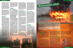 - Brennendes Altöl: Spektakulärer Großbrand im steirischen Mureck. Eine nahe dem Biodieselwerk situierte Halle ging in Flammen auf. Gelagertes Altöl bot dem Feuer optimale Nahrung für eine rasche Ausdehnung. 130 Mann aus 12 Wehren leisteten gute Arbeit.