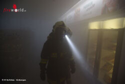 Im Verkaufsbereich der Tankstelle kam es zu einer starken Rauchentwicklung – fünf Personen wurden vermisst. Mit zwei Atemschutztrupps gelang es jedoch, den simulierten Brandherd rasch zu finden und die vermissten Personen zu retten.