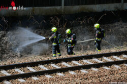 Die alarmierten Einsatzkräfte bekämpften unverzüglich nach dem Sperren des Zugverkehrs im Böschungsbereich die Flammen. An mehreren Stellen auf einer längeren Strecke aufgeteilt brannten weitere Böschungsteile.