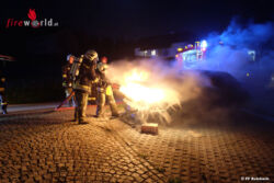 Die beiden Feuerwehren der Stadtgemeinde Rohrbach und Perwolfing wurden um 23:08 mit Sirenenalarm alarmiert und rückten innerhalb kürzester Zeit aus. Automatisch erfolgt eine Meldung über die Landeswarnzentrale auch an die Polizei, die ersteintreffende Streife der Polizei Rohrbach AGM konnte mit den mitgeführten Handfeuerlöschern den Brand rasch eindämmen. Die Feuerwehr Perwolfing löschte dann den Brand des Pkw mit Wasser und Schaum noch restlos ab.