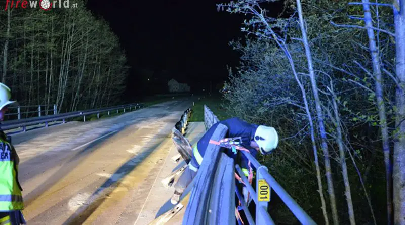Beim Eintreffen am Einsatzort stellte Einsatzleiter Oberbrandinspektor Doregger Robert fest, dass der Pkw auf die dortigen beidseitigen Leitschienen geraten ist und diese aus der Verankerung riss.