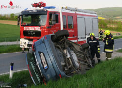 Die Einsatzkräfte der Feuerwehr Ollern sicherten die Einsatzstelle ab und führten die Fahrzeugbergung durch.
