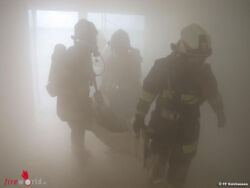 Die Mannschaften wurden zu einem Brand in einem Rohbau mit einer unbekannten Anzahl von vermissten Personen alarmiert. Im blickdicht verrauchten Stiegenhaus wurde mithilfe der Wärmebildkamera der Brandherd sowie die Vermissten gesucht und ins Freie gebracht. Bewährt haben sich bei dieser Einsatzübung wieder einmal die Schlauchtragekörbe mit denen die Angriffsleitung sowie die Schlauchreserve schnell verlegt werden konnte.