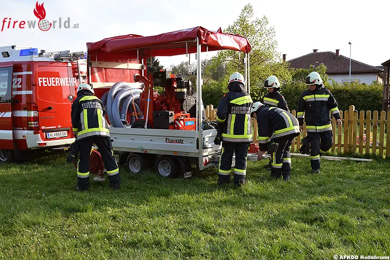 Es wurden mit dem AFKDO Hollabrunn Gespräche geführt, welche Geräte für derartige Einsätze benötigt werden. Schnell ist man auf eine Großpumpenanlage gekommen. Aufgrund der Einheitlichkeit fiel die Entscheidung auf die SPA 200, welche auch bereits durch das NÖ Landesfeuerwehrkommando angeschafft wurden. Als Anhänger wurde ein Tandem Anhänger gewählt. Alles was zum Betrieb der Pumpe benötigt wird ist auf dem Anhänger verladen.