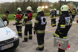 Bezirks-Feuerwehrkommandant Alfred Deschberger und Hauptbewerter Manfred Feichtinger gratulierten den 14 Kameraden zur gemeinsam abgelegten THL-Prüfung in Bronze und ersuchten um weiterhin gute, kameradschaftliche Zusammenarbeit im Ernstfall bei solchen Einsätzen.