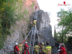 GRAZ (STMK): Die Grazer Berufsfeuerwehr wurde am 26. April 2016 um 19.09 Uhr zu einem spektakulären Einsatz auf den Schlossberg alarmiert. Ein junger Immigrant hat aus Übermut unterhalb der Bastei den Felsen bestiegen.