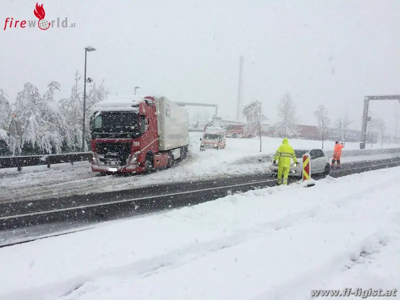 Am Mittwoch dem 27. April wurden die beiden Feuerwehren Ligist und Steinberg bei Ligist zu einem Verkehrsunfall auf die Südautobahn A2 alarmiert. Auf der schneenassen Fahrbahn fuhr ein Pkw einem Lkw hinten auf, Glück im Unglück hatte der unverletzte Lenker. Mit dem SRF Ligist wurde der PKW geborgen und außerhalb des Gefahrenbereiches abgestellt.