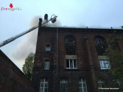DÜSSELDORF (DEUTSCHLAND): Auf dem Gelände der ehemaligen JVA in der Ulmenstraße in Düsseldorf ist es aus ungeklärter Ursache zu einem Brand gekommen. Der Dachstuhl der Kapelle sowie darunterliegende Geschosse sind davon betroffen. Beim Eintreffen der Feuerwehr schlugen die Flammen bereits mehrere Meter aus dem Dachstuhl des Gebäudes empor.
