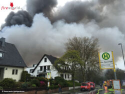 Im ersten Abmarsch waren rund 45 Kräfte der Heiligenhauser Wehr am Ort und leiteten die ersten Maßnahmen ein. Als die Feuerwehr eintraf, schlugen bereits Flammen aus dem Dach, kleine Explosionen ereigneten sich im Gebäude. Das direkt nebenan gelegene Wohnhaus am Schopshofer Weg wurde aus Sicherheitsgründen evakuiert, von mehreren Seiten wurde das Feuer bekämpft. "Direkt nach der ersten Erkundung war klar, dass unsere Kräfte hier nicht ausreichen", schildert Einsatzleiter Ulrich Heis. Aus den Nachbarstädten wurde Hilfe angefordert. "Wichtig war für uns die Information zu Beginn, dass sich keine Menschen mehr im Gebäude befinden." Zu Beginn des Einsatzes konnten die Frauen und Männer der Feuerwehr mehrere Gasflaschen aus einem gefährlichen Bereich bringen. "Es hätte mehrere heftige Explosionen geben können, wenn uns das nicht gelungen wäre", schildert Pressesprecher Nils Vollmar.