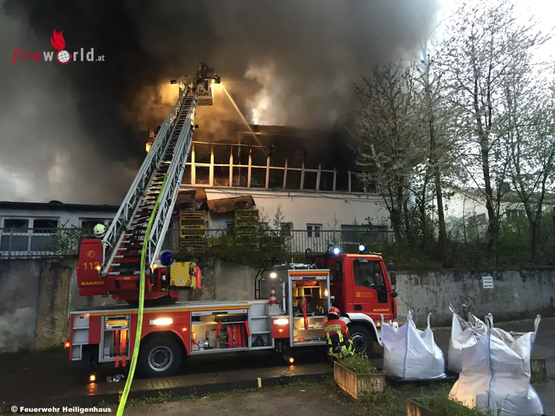 Im ersten Abmarsch waren rund 45 Kräfte der Heiligenhauser Wehr am Ort und leiteten die ersten Maßnahmen ein. Als die Feuerwehr eintraf, schlugen bereits Flammen aus dem Dach, kleine Explosionen ereigneten sich im Gebäude. Das direkt nebenan gelegene Wohnhaus am Schopshofer Weg wurde aus Sicherheitsgründen evakuiert, von mehreren Seiten wurde das Feuer bekämpft. "Direkt nach der ersten Erkundung war klar, dass unsere Kräfte hier nicht ausreichen", schildert Einsatzleiter Ulrich Heis. Aus den Nachbarstädten wurde Hilfe angefordert. "Wichtig war für uns die Information zu Beginn, dass sich keine Menschen mehr im Gebäude befinden." Zu Beginn des Einsatzes konnten die Frauen und Männer der Feuerwehr mehrere Gasflaschen aus einem gefährlichen Bereich bringen. "Es hätte mehrere heftige Explosionen geben können, wenn uns das nicht gelungen wäre", schildert Pressesprecher Nils Vollmar.