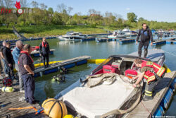 Nachdem das Boot stabilisiert wurde konnte es mit einem weiteren Wasserfahrzeug zur Slipstelle gezogen und aus dem Wasser gebracht werden. Die Reinigung der mit Öl kontaminierten Geräte sowie der Tauchausrüstung nahm noch einige Zeit in Anspruch.