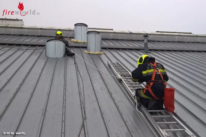 Von Vorteil waren die am Dach befindlichen Sicherungsleinen eines Spenglerunternehmens, welche ein sicheres Arbeiten gewährleisteten. Nach ca. eineinhalb Stunden waren die Arbeiten abgeschlossen und das Unternehmen vor größerem Schaden bewahrt. Die FF St. Veit/Tr. stand mit 26 Mann und 3 Fahrzeugen (RLF-A 2000, LF-B und KRF-S) unter der Einsatzleitung von BR Rudolf Hafellner im Einsatz.