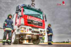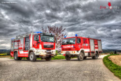 Eine technische Vorstellung des Fahrzeuges folgt, da erst einmal die entsprechende Fotoreportage dafür angefertig werden muss. Davor ließ man es sich aber auch nicht nehmen, die beiden Generationen an Rüstlöschfahrzeugen für ein Foto gegenüberzustellen.
