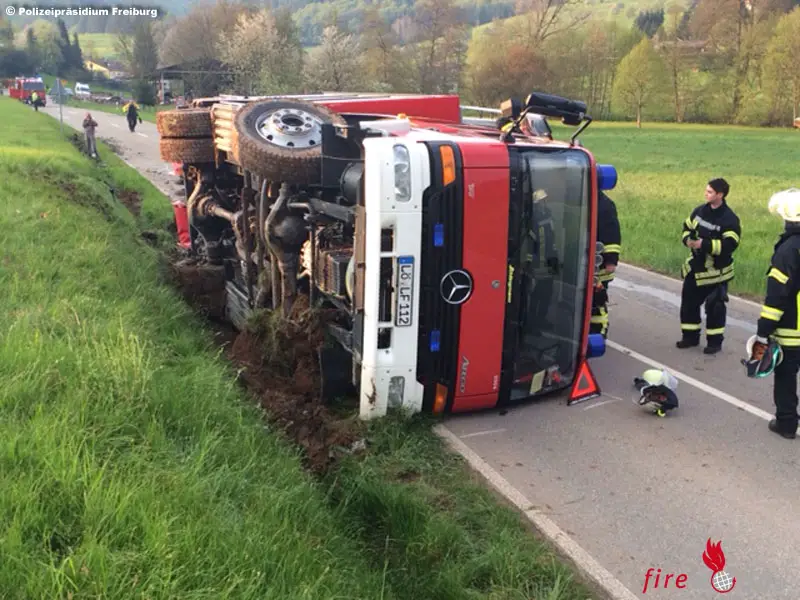 Deutschland: Löschfahrzeug gerät auf Bankett und stürzt um: Fw-Mann leicht verletzt