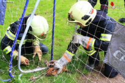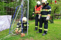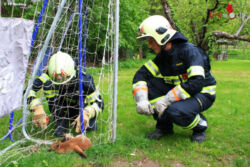 MÖDLING (NÖ): In einem Fußballnetz im Garten eines Hauses in der Fürstenstraße hatte sich am Nachmittag des 3. Mai 2016 ein kleiner Fuchs derartig verfangen, dass die Hausbewohnerin die Hilfe der Feuerwehr anforderte.
