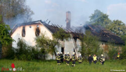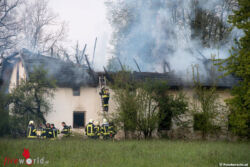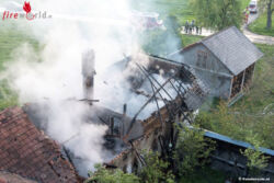 VORCHDORF (OÖ): Ein Brand auf einem alten Bauernhof in Vorchdorf (Bezirk Gmunden) hat Dienstagfrüh, 3. Mai 2016, ein Todesopfer gefordert. Die Feuerwehr stand mit einem Großaufgebot im Einsatz, Alarmstufe II wurde ausgelöst.