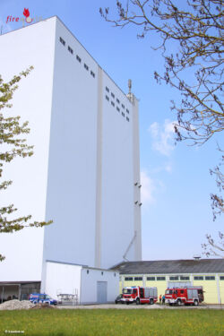 STADL PAURA (OÖ): Die Feuerwehr stand Dienstagvormittag, 3. Mai 2016, bei einem Brand im Agrarspeicher in Stadl-Paura (Bezirk Wels-Land) im Einsatz.