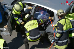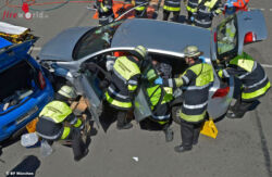 Mit Hilfe von hydraulischem Rettungsgerät entfernten die Feuerwehrleute die Mittelsäule des Pkw. Der Mann konnte dann im Anschluss schonend aus dem Fahrzeug gerettet werden. Ein Rettungswagen brachte ihn in Begleitung des Feuerwehr-Notarztes in den Schockraum einer Klinik. Bei dem zweiten Unfallbeteiligten handelte es sich um einen Kleinwagen. Die beiden Insassen, zwei Frauen, wurden durch den Unfall leicht verletzt. Auch sie kamen mit einem Rettungswagen in eine Klinik. Für die Dauer der Rettungsund Bergungsarbeiten kam es rund um die Kreuzung Arnulfstraße und Seidlstraße zu Verkehrsbehinderungen.