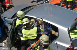 MÜNCHEN (BAYERN): Im Kreuzungsbereich vor der Paul-Heyse-Unterführung ist es in München gegen 14.00 Uhr des 6. Mai 2016 zu einem Zusammenstoß zwischen zwei Pkw gekommen. Durch die große Aufprallwucht bestand beim 27 Jahre alten Fahrer eines VW Golf der Verdacht einer Wirbelsäulenverletzung. Seine Rettung aus dem beschädigten Auto musste sehr behutsam vorgenommen werden.