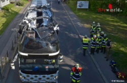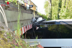 Die Fahrbahn musste anschließend von Glas- und Trümmerteilen gereinigt werden. Wie hoch der Sachschaden an dem nagelneuen Bus, sowie ein eventueller Schaden an der Brücke ist, kann von der Feuerwehr nicht beziffert werden. Zur genauen Klärung des Unfallherganges ermittelt die Polizei.