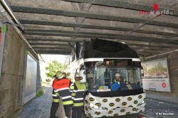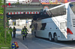 Die alarmierten Einsatzkräfte von Berufs- und Freiwilliger Feuerwehr staunten nicht schlecht, als sie sahen wie tief der Bus in der Bahnunterführung feststeckte. Da der Bus nicht mit Fahrgästen besetzt war, wurde zum großen Glück niemand verletzt. Das komplette Oberdeck des Doppeldeckers wurde dabei völlig zerdrückt. Die Einsatzkräfte sperrten von beiden Seiten die Dachauer Straße. Nach Absenken des Fahrzeuges wurde es von Feuerwehrleuten rückwärts aus der Unterführung gefahren.