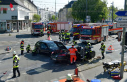 Daraufhin konnten der Fahrzeuglenker und seine Frau schonend aus dem stark beschädigten Pkw gerettet werden. Nach einer medizinischen Erstuntersuchung durch das Notarztteam Mitte kamen der 66-Jährige mit dem Rettungswagen und seine Frau mit dem Notarztwagen in Münchner Kliniken. An den Fahrzeugen entstand ein beträchtlicher Sachschaden. Die Polizei hat die Ermittlung zum Unfallhergang aufgenommen.