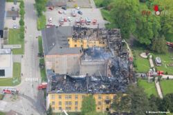 In diesem Bereich seien noch zahlreiche Glutnester, aber „absolut keine Chance daran zu denken, dass man einen Innenangriff starten kann“. Gruber zollte gleichzeitig den Hilfskräften großes Lob für den unermüdlichen Einsatz. Bis zu 29 Feuerwehren mit knapp 450 Mann kämpften gegen die Flammen. „Das sind Ereignisse, wo man hofft, dass sie nie eintreten“