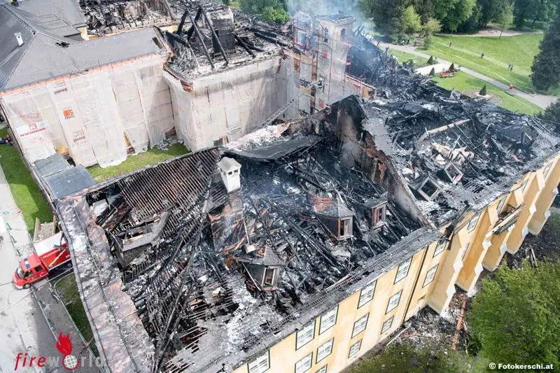 Oö: Nach dem Großfeuer auf Schloss Ebenzweier: „Brand aus nach 52 Stunden“ (+Luftbilder)