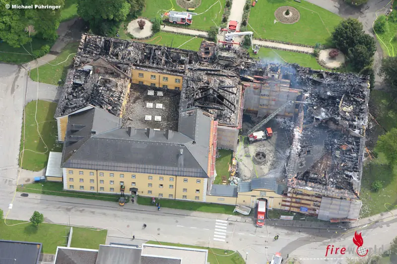 In diesem Bereich seien noch zahlreiche Glutnester, aber „absolut keine Chance daran zu denken, dass man einen Innenangriff starten kann“. Gruber zollte gleichzeitig den Hilfskräften großes Lob für den unermüdlichen Einsatz. Bis zu 29 Feuerwehren mit knapp 450 Mann kämpften gegen die Flammen. „Das sind Ereignisse, wo man hofft, dass sie nie eintreten“