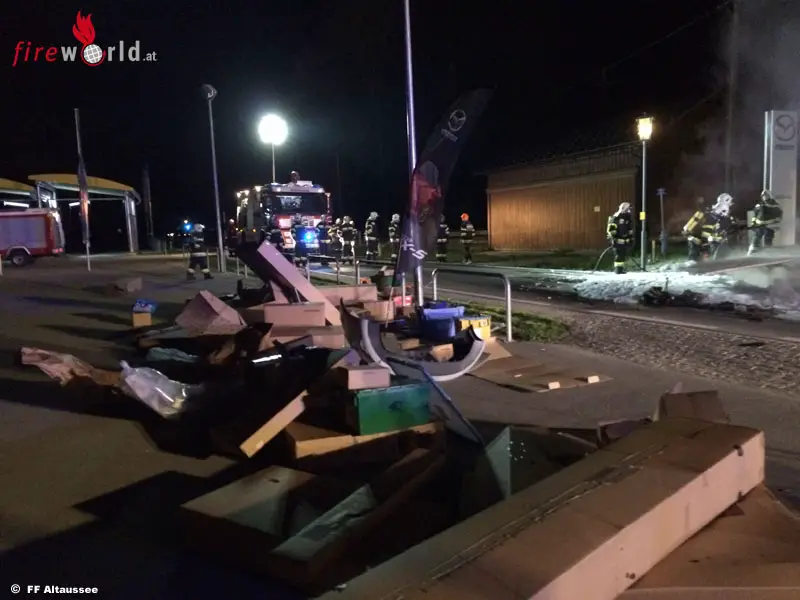 Dieser befand sich direkt beim Firmengelände eines Autohauses in Altaussee, wo der Lkw-Ersatzteile zugestellt hatte. Umgehend wurde die FF Altaussee nachalarmiert und seitens der FF Bad Aussee mit der Bekämpfung des mittlerweile in Vollbrand stehenden Zuliefer-Lkwbegonnen.