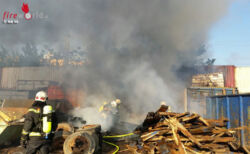 WIEN, 11. BEZIRK: Auf einem an der Ost-Autobahn gelegenen Betriebsareal in Wien – Simmering war es am späten Nachmittag des 9. Mai 2016 zu einem Brand gekommen. Beim Eintreffen der Feuerwehr standen mehrere, teilweise übereinander gestapelte Hochseecontainer, einige Mulden sowie diversen Lagerungen in Brand.