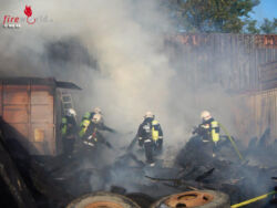 Zudem wurden Lagerungen mit einem Bagger zerteilt, um eine gezieltes Aufbringen von Löschwasser zu ermöglichen. Durch den umfassenden Löschangriff konnte der Brand nach ca. einer Stunde abgelöscht werden. Anschließend wurden umfangreiche Nachlöscharbeiten durchgeführt. Die Brandursache ist Gegenstand von Ermittlungen.