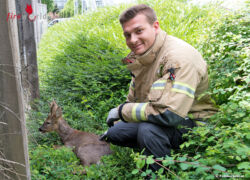 Der Rehbock wurde im Anschluss von der Berufsfeuerwehr und einem Jäger in einem Wald außerhalb von Linz wieder ausgesetzt.