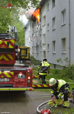 MÜNCHEN (BAYERN): Mehrere Anrufer riefen gegen 18.00 Uhr des 13. Mai 2016 in der integrierten Leitstelle an und meldeten einen lauten Explosionsknall. Als die Einsatzkräfte die Alarmadresse in der Mühldorfstraße erreichten, stand eine Wohnung im zweiten Obergeschoss in Vollbrand und die Flammen drohten auf das Dach überzugreifen.