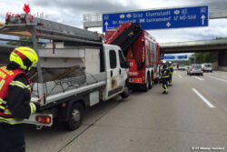 Um 12:27 Uhr alarmierte die Bezirksalarmzentrale die Freiwillige Feuerwehr Wiener Neudorf zum ersten Verkehrsunfall, welcher sich in Fahrtrichtung Graz kurz vor der Ausfahrt Wiener Neudorf ereignet hatte. Ein Klein-Lkw kam nach einem Verkehrsunfall auf der dritten Fahrspur fahrunfähig zum Stillstand und behinderte so den nachfolgenden Verkehr in Fahrtrichtung Süden. Um die Fahrspuren so rasch wie möglich für den Verkehr frei zu bekommen, wurde das Fahrzeug von der Feuerwehr mit dem schweren Rüstfahrzeug von der Unfallstelle geborgen.