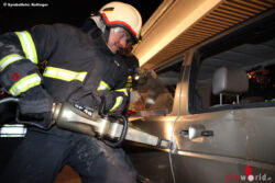 Ein SUV fuhr in die Beifahrerseite eines Pkw. Während die beiden Insassen des SUV mit leichten Verletzungen ihr Auto verlassen konnten, waren die zwei Insassen des anderen Fahrzeuges eingeklemmt. Der Fahrer war schwer verletzt aber ansprechbar, für die Person auf der Beifahrerseite kam leider jede Hilfe zu spät.