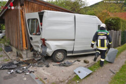 Nö: Pkw schiebt geparkten Kleinbus nach Unfall in Gloggnitz in Holzhütte