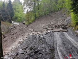 LINTHAL (SCHWEIZ): Am Freitag, 13.05.2016, wurde auf der Altenorenstraße in Linthal gegen 09.00 Uhr eine Baustelle von einem Murgang (Runse) verschüttet. Dabei wurde ein Arbeiter mitgerissen.