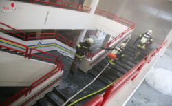Oö: Große Einsatzübung von 10 Feuerwehren in alter Hauptschule Grieskirchen