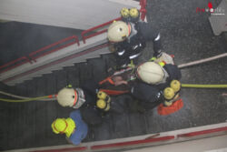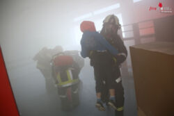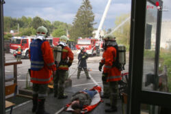 Das weitläufige Areal, welches in den kommenden Wochen einer Wohnanlage weichen wird, bot sich als perfektes Übungsobjekt an. Im dicht verrauchten Gebäude fanden die Atemschutztrupps der 10 eingesetzten Feuerwehren bestmögliche und realitätsnahe Gegebenheiten vor. Zahlreiche „vermisste Personen“ wurden aus dem Gebäude gerettet. Zudem wurde die Kommunikation zwischen den einzelnen Feuerwehren geübt und verbessert.